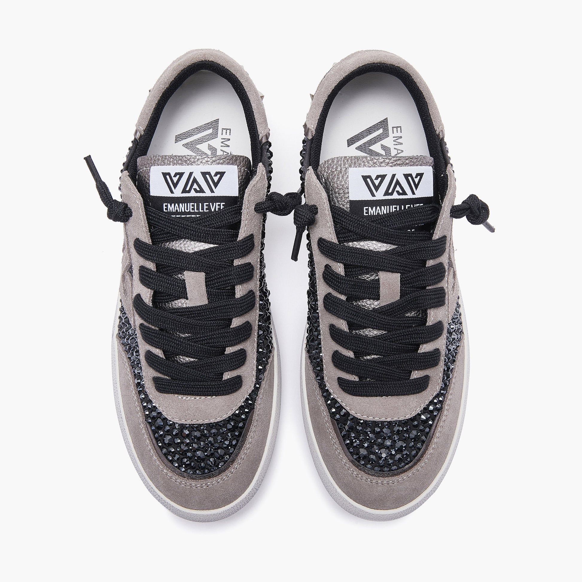 Scatena il tuo stile con le sneaker EMANUELLE VEE Olivia: un mix audace di raso nero e strass scintillanti che catturano ogni sguardo. Leggere e di carattere, sono l'arma perfetta per chi vuole distinguersi con un tocco glamour e deciso. Ideali per chi osa senza rinunciare al comfort.