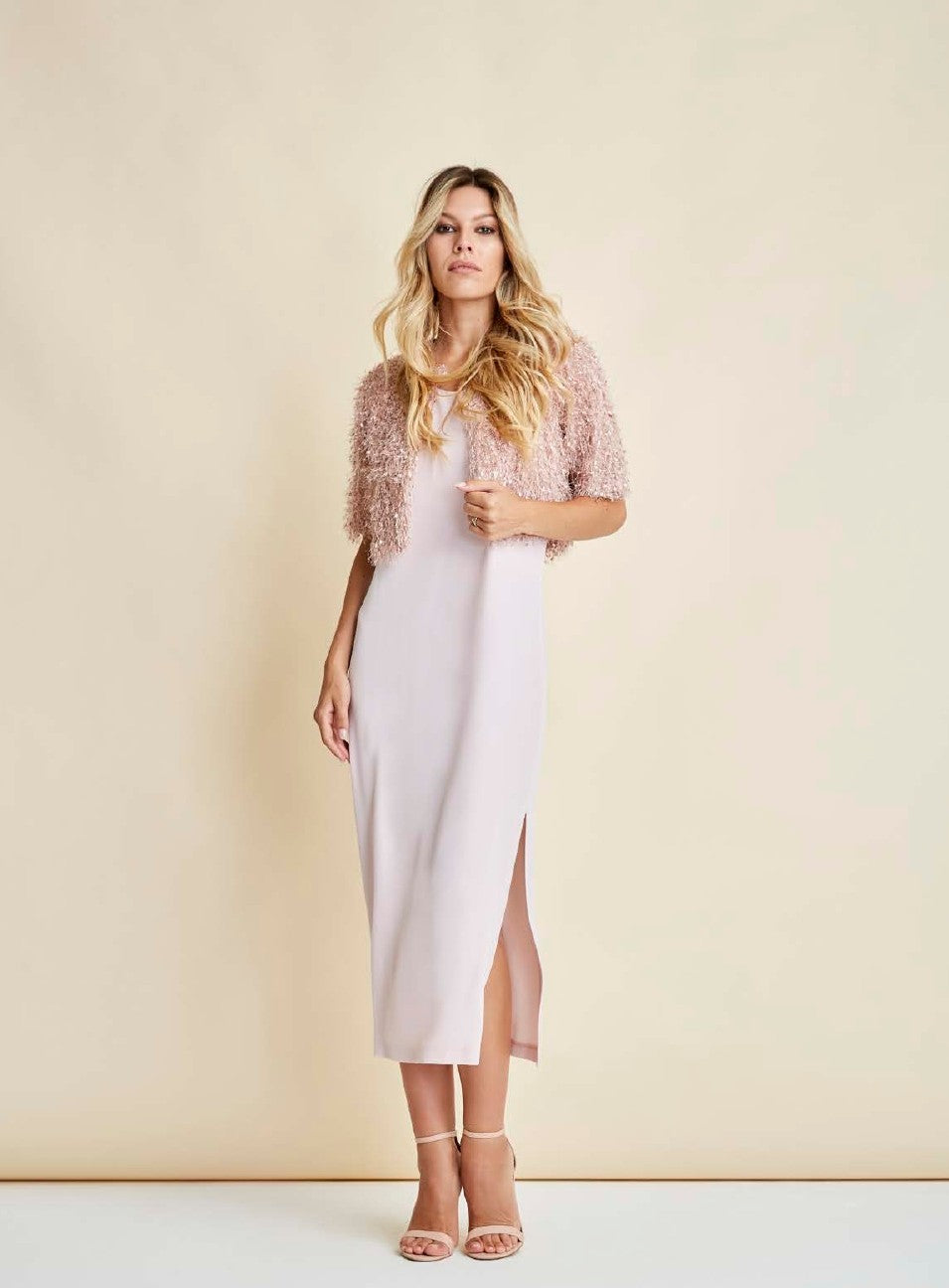 Scopri il coprispalle FLIRT, un capo essenziale realizzato in pregiato tessuto piume dal finish ultra-morbido. La tonalità rosa delicata si abbina facilmente a qualsiasi guardaroba, dalle occasioni formali ai momenti casual.