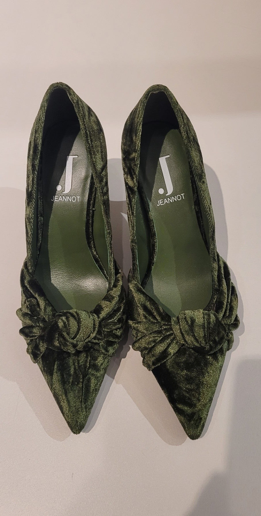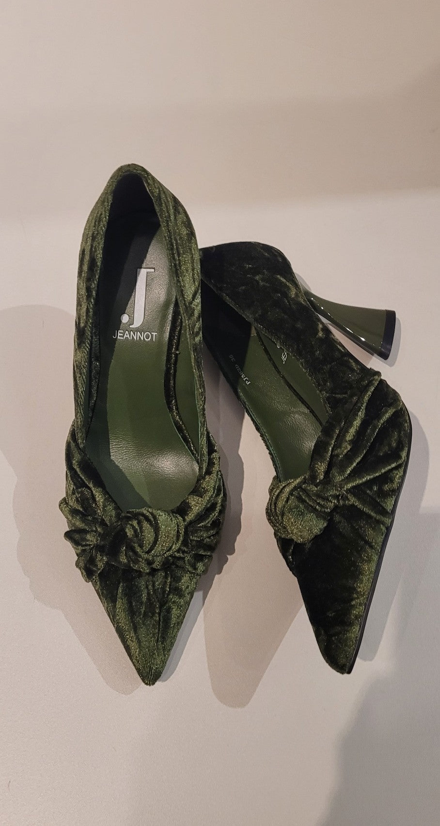 JEANNOT Decoltè velluto verde stropicciato T.70